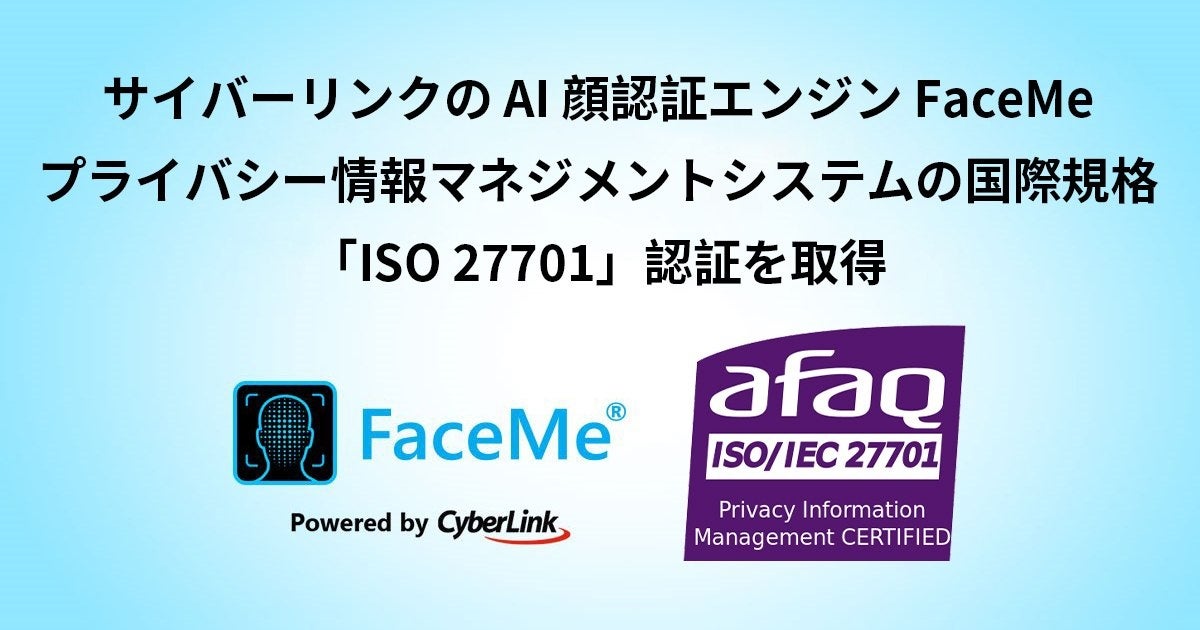 サイバーリンクの AI 顔認証エンジン FaceMe®、プライバシー情報マネジメントシステムの国際規格「ISO 27701」認証を取得、個人情報保護への取り組みを強化