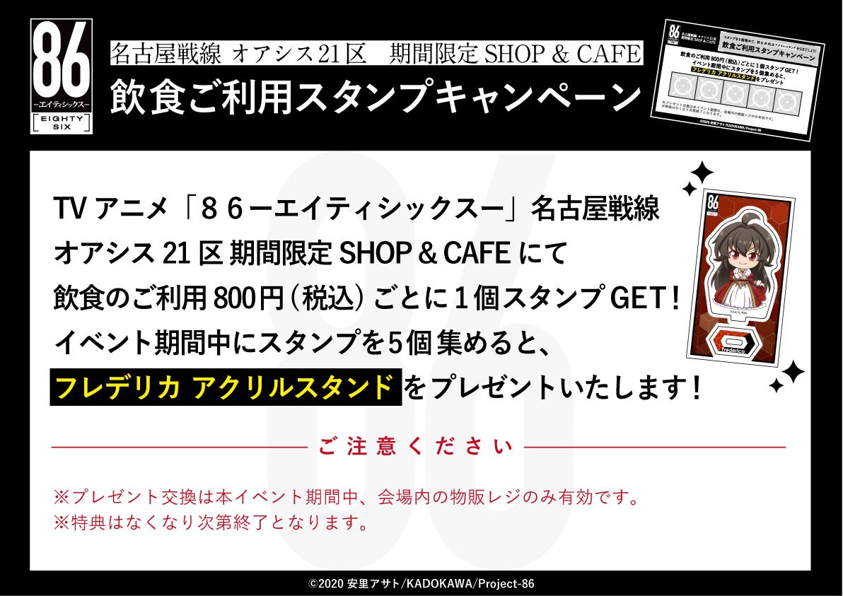 TVアニメ放送開始からまもなく1周年を迎える『TVアニメ「86―エイティシックス―」』期間限定SHOP&CAFEを、東海地区常設店舗として名古屋市栄・オアシス21内に新規オープンする「マンガ展 名古屋」にて、本日3月17日(木)から4月3日(日)まで期間限定開催いたします!