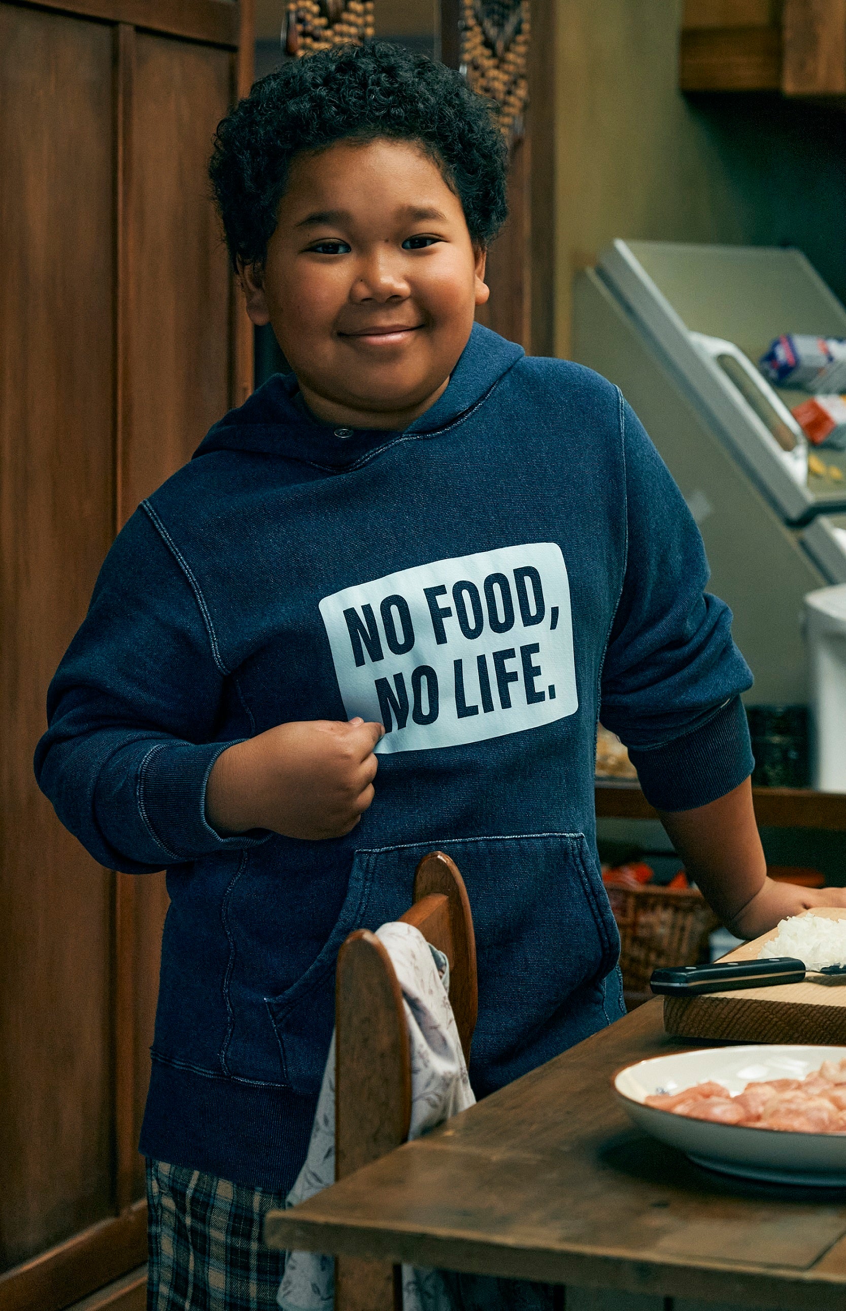 また、瑤子(ようこ)先生が担任を努める子役のサニーマックレンドンさんが演じるクラスのお笑い担当飯田サニー宗佑が劇中で着用している【NOFOOD NOLIFE】のロゴを使用したTシャツアイテムをライトオンオンラインショップ限定にて販売いたします!(左 写真)