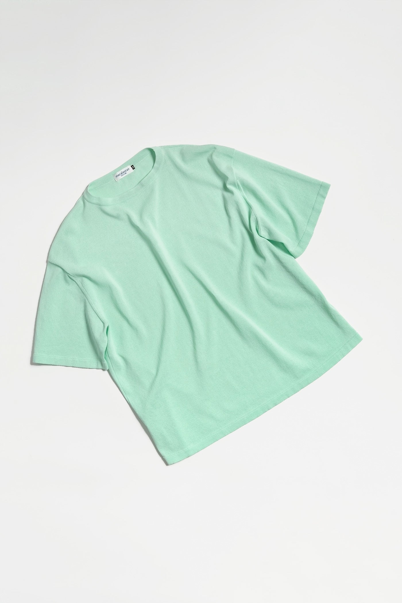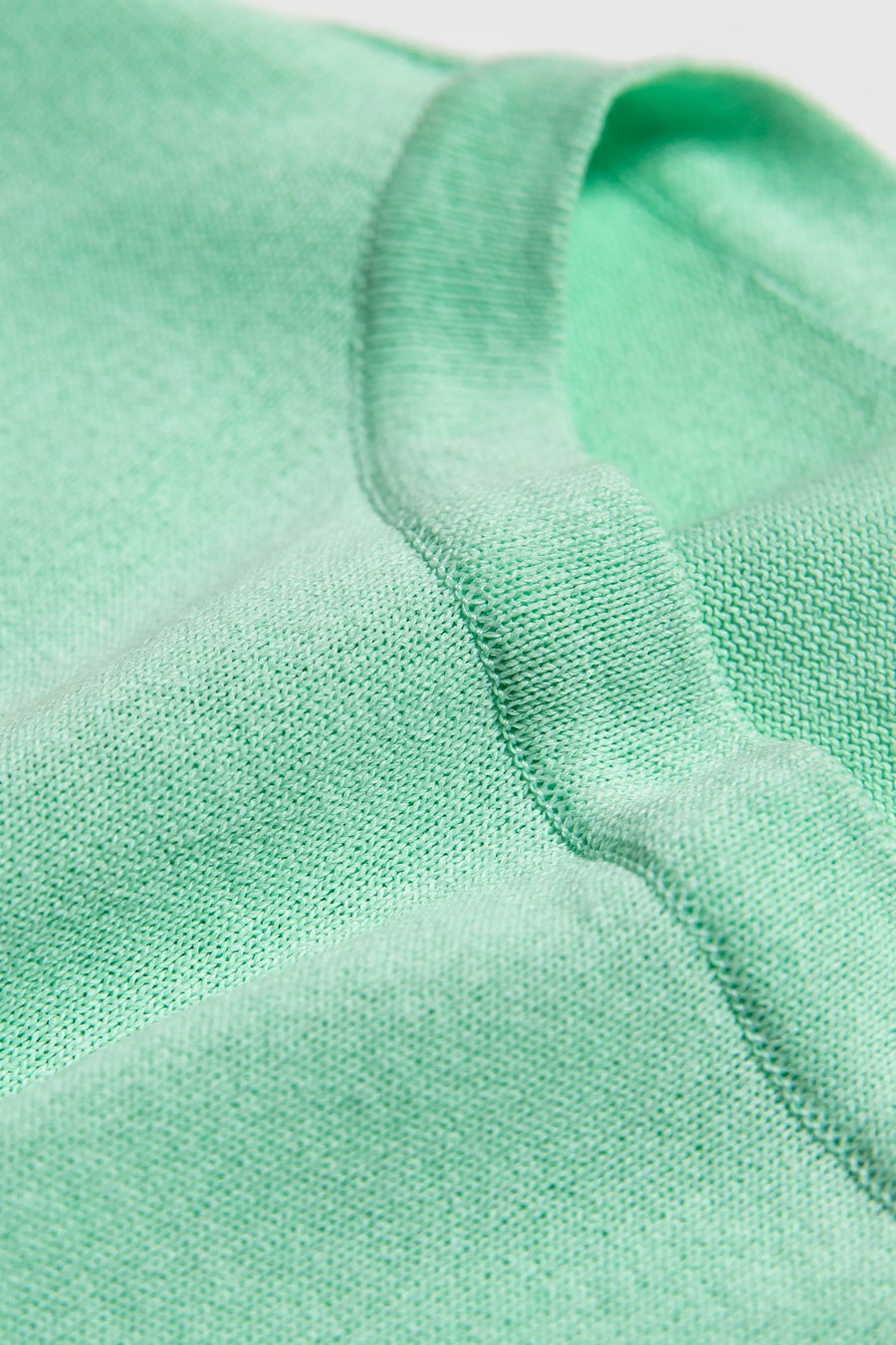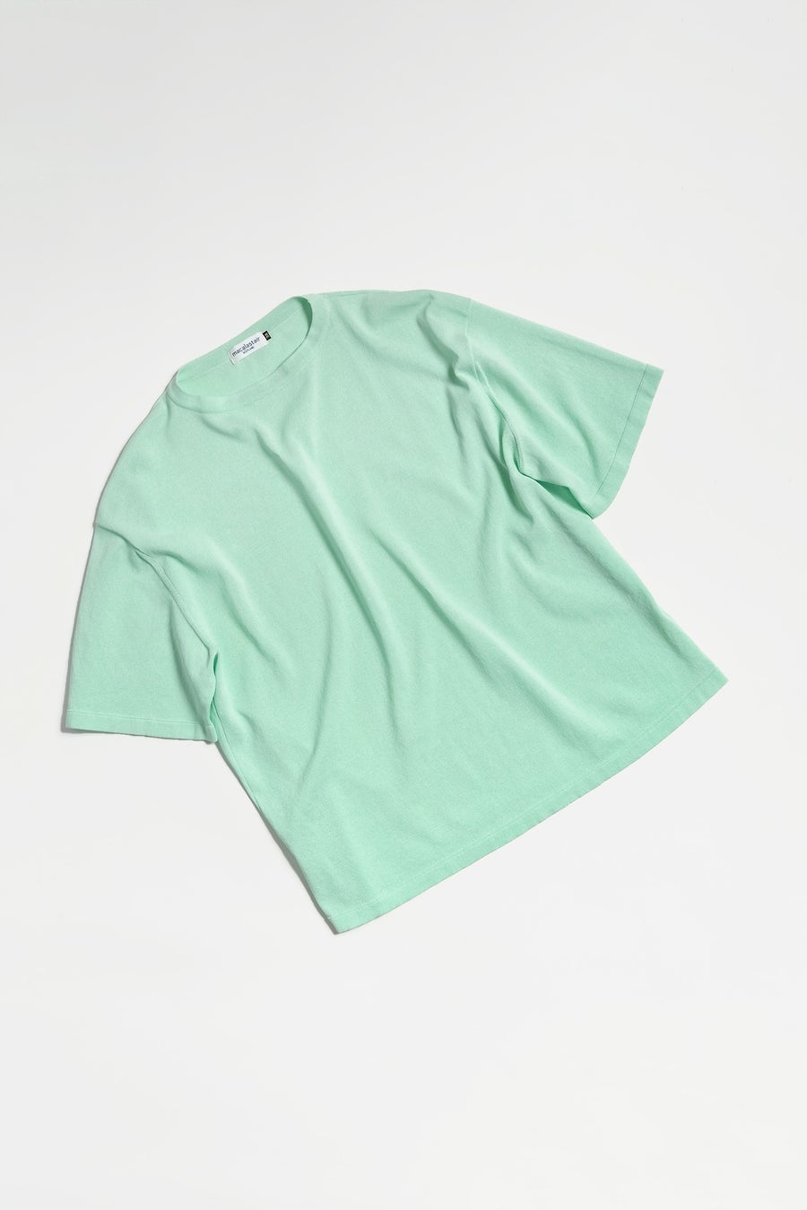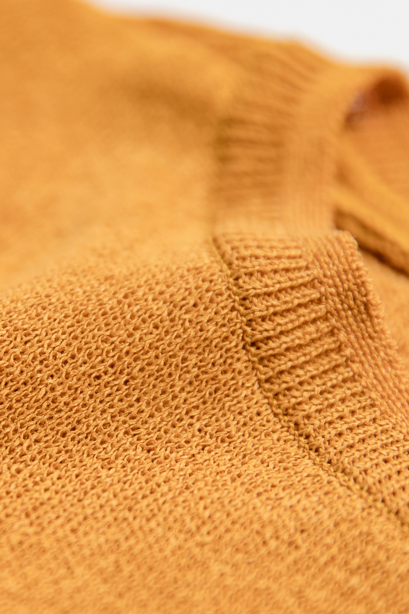 昨年メンズで人気を博したモデルが今季はユニセックスモデルとして登場。身幅の広いオーバーサイズシルエットで、身体のラインが出過ぎず、涼しく着ることができるのが魅力。漁師が着ていたトラディショナルな「バスクシャツ」のように、ゆったりと開いたボートネックがリラックス感を演出してくれます。裾や袖にはあえてリブを使わず、一般的なTシャツのような軽やかな仕様に。一方で、オーバーサイズながら袖の長さの調整や袖に施された「減らし目」と呼ばれるニットならではの表現を取り入れることで、上品さがプラスされています。