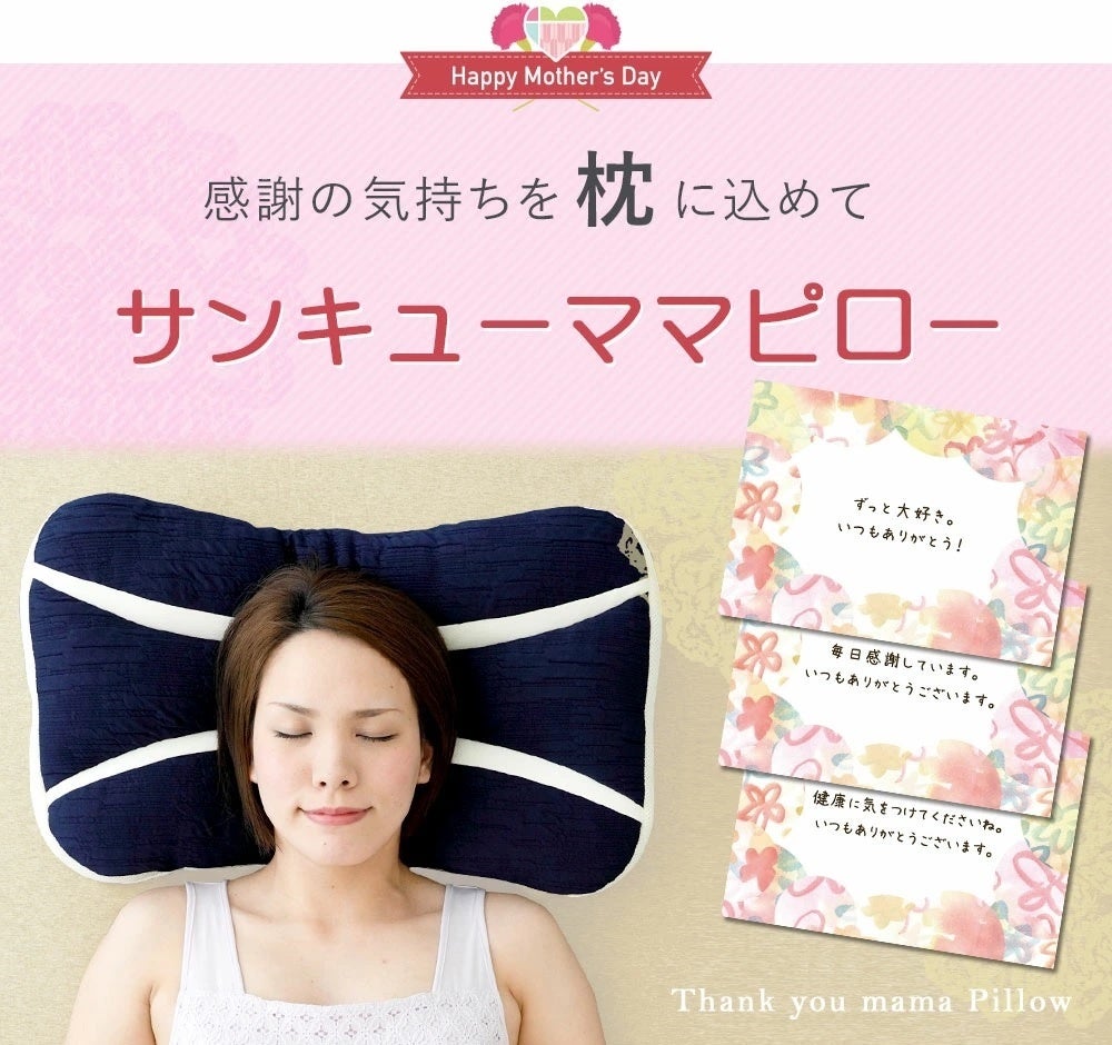 枕と同じくらい大きな、選べるメッセージカード付きの枕。お母さんへの感謝の気持ちが伝わる、母の日だけの特別なギフトです。