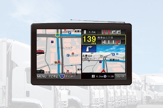 トラックが走行できる道路を優先して案内するトラックモード搭載のカーナビゲーション。