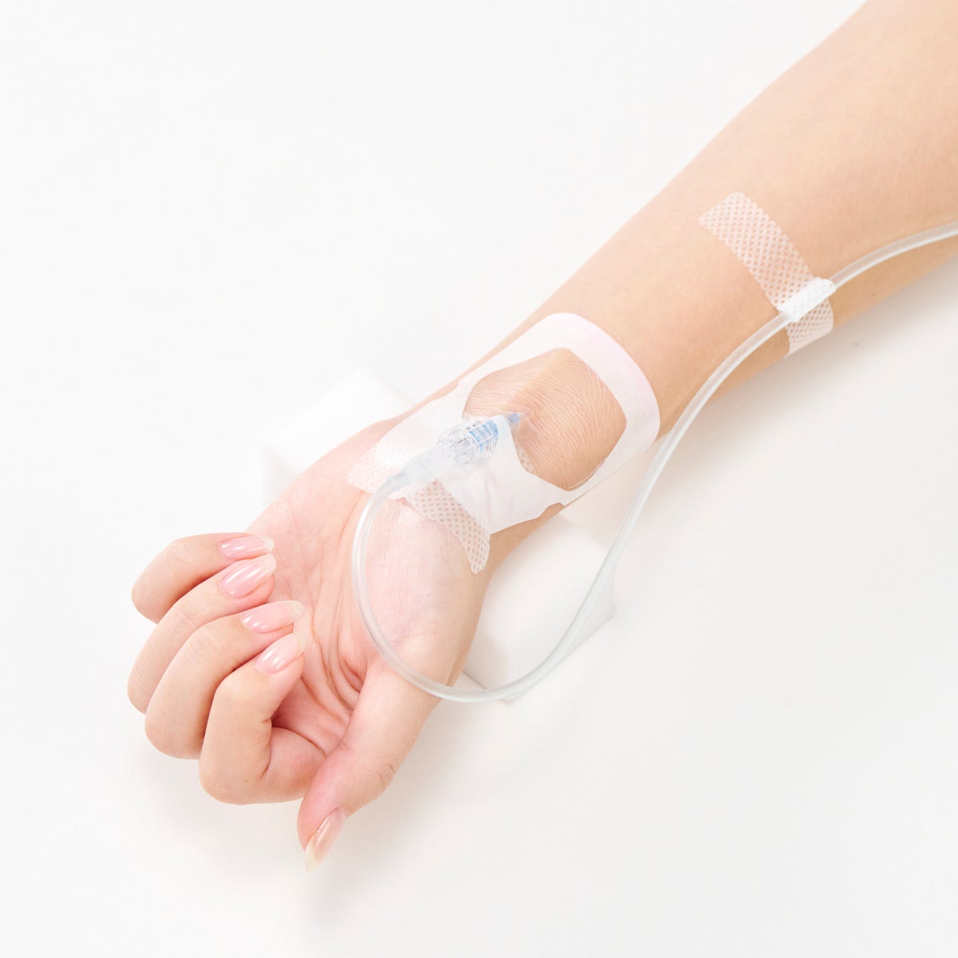 この度、末梢動脈カテーテルの固定に適したサイズを新たに発売します。末梢動脈カテーテルとは、動脈にカテーテルを穿刺し確保したルートのことで、手術中やICU、救命救急など集中管理下において、持続的な血圧のモニタリングや頻回な血液ガス分析・採血などに用いられます。本製品は、2023年1月に発売した末梢静脈用と比べてドレッシング本体のサイズが小さく、手首などに貼付しやすくなっています。