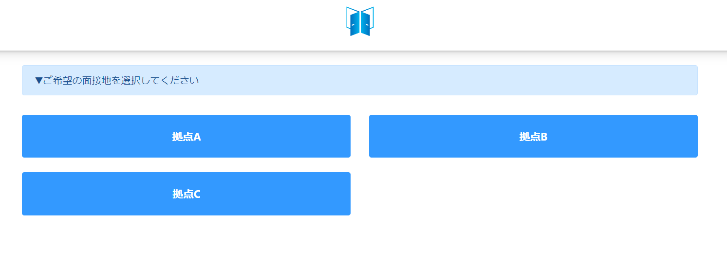 派遣の登録場所やパート・アルバイトの勤務先など拠点が複数ある場合、応募者に希望する面接地を選択させて該当する拠点の予約フォームを表示させる新機能です。これまでの日程調整機能でも面接予約の自動化は可能でしたが複数拠点がある場合には予約フォームURLを応募者に対して拠点数分送る必要がございました。今回の機能追加により複数拠点分の予約フォームを一つのURLにまとめて応募者に送れることが出来て希望面接地を選択しやすくなります。