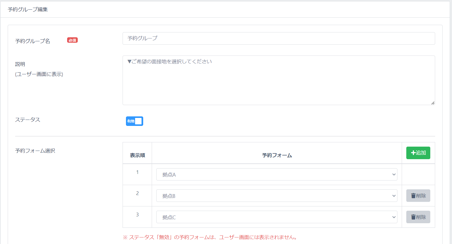 ※予約グループ設定機能の設定画面