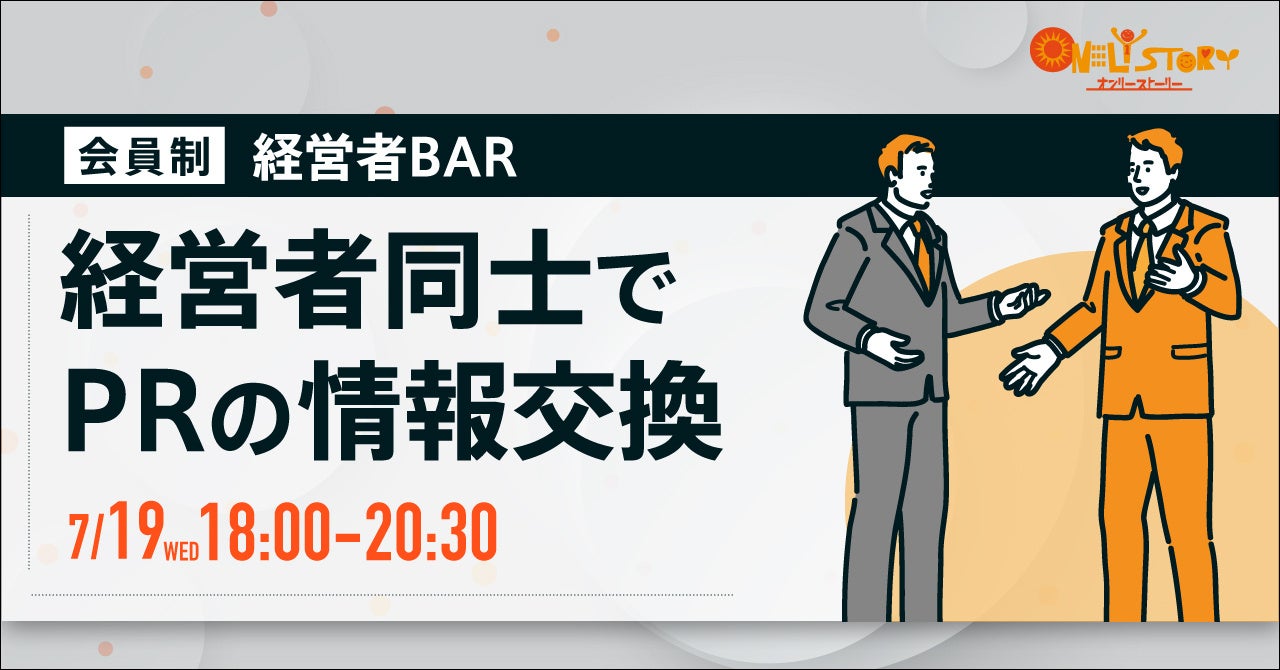 7月19日(水)18:00-20:30 PRに関心がある経営者向けに経営層限定・BAR貸切交流会を実施