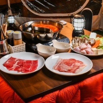 お鍋は二色鍋スタイルで、お好きな組み合わせをお選びいただけます。さらに、〆にはごはん・ラーメン・うどんの3種類をご用意。
