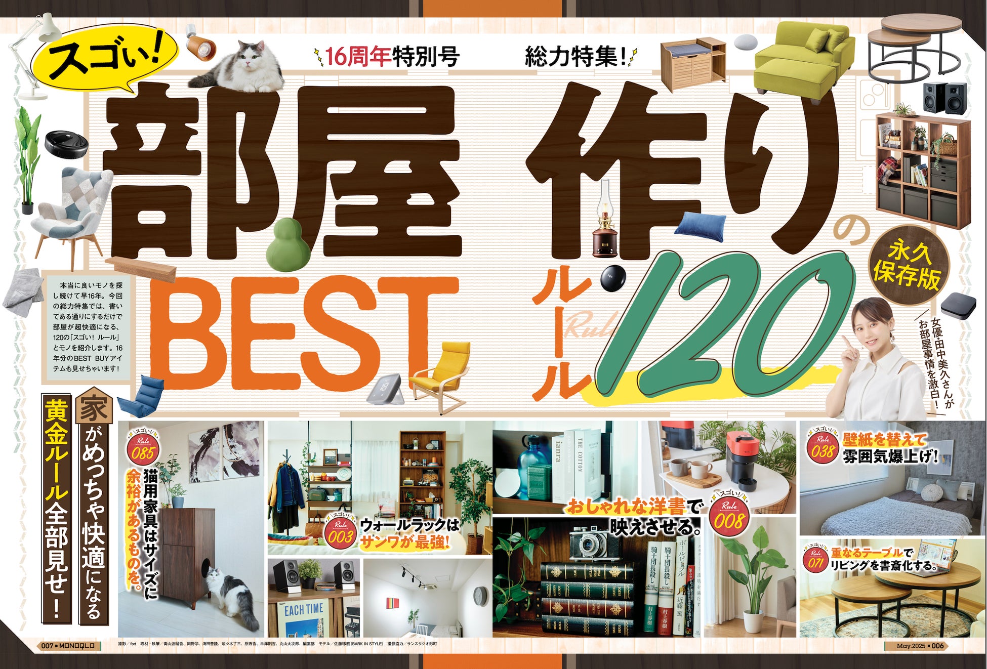 本当に良いモノを探し続けて早16年。今回の総力特集では、書いてある通りにするだけで部屋が超快適になる、120の「スゴい! ルール」とモノを紹介します。16年分のBEST BUYアイテムも見せちゃいます!