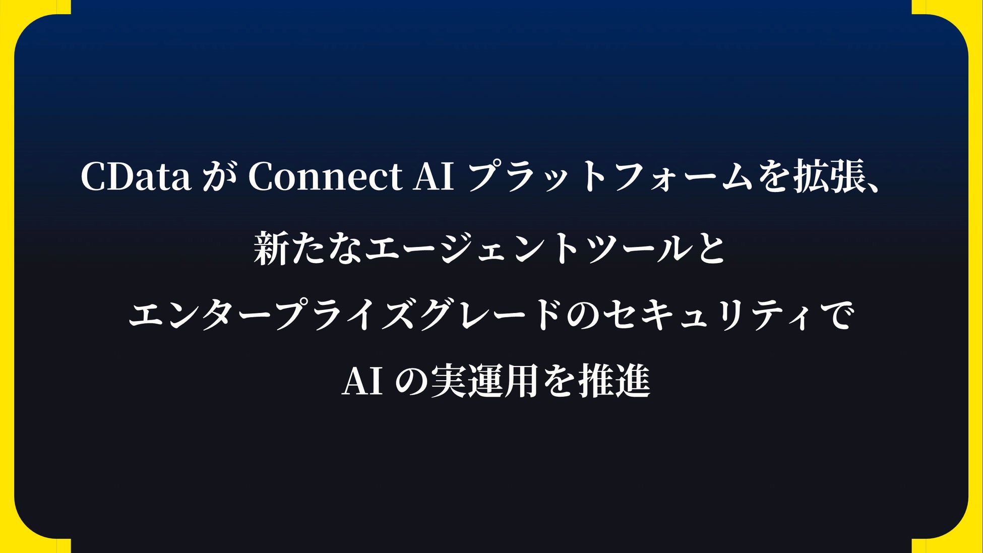 CData が Connect AI プラットフォームを拡張、新たなエージェントツールとエンタープライズグレードのセキュリティで AI の実運用を推進