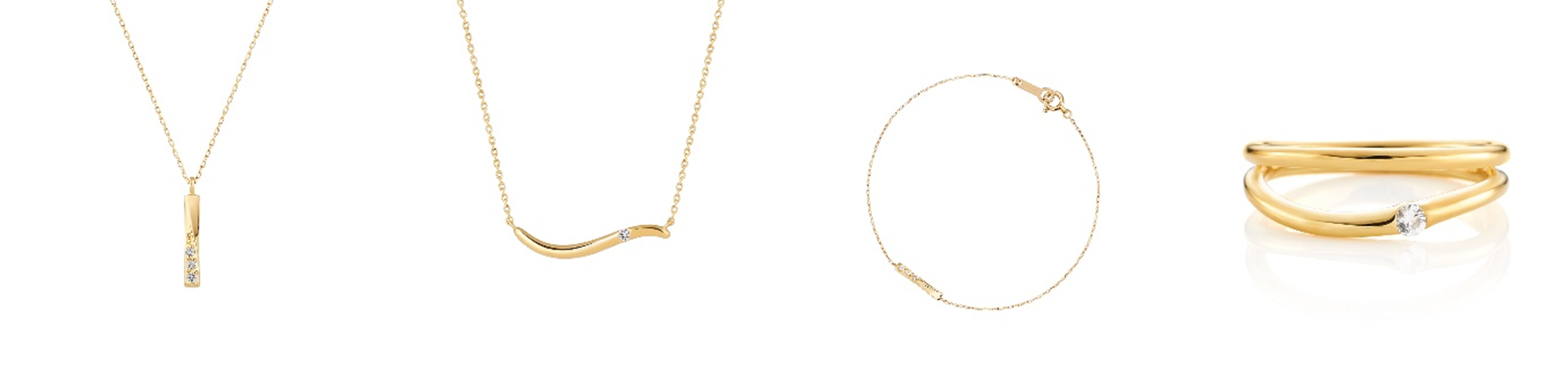 時の流れをイメージし、イエローゴールドのバーに流れるようにきらめくトパーズをあしらったネックレスやリングも。アイテム違いでもリンクする個性あるデザインは、さりげなく二人を結びつける粋なアイテム。またウェーブのデザインが流れる日々を思わせる、日常になじむモダンなデザインも。大切な人とのかけがえのない日々の思い出を、ジュエリーを通してあなたの毎日にそっと溶け込ませて。