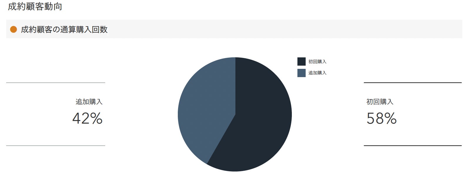 成約顧客の通算購入回数は、初回購入は58%で、以前購入されている方の追加購入は42%となりました。