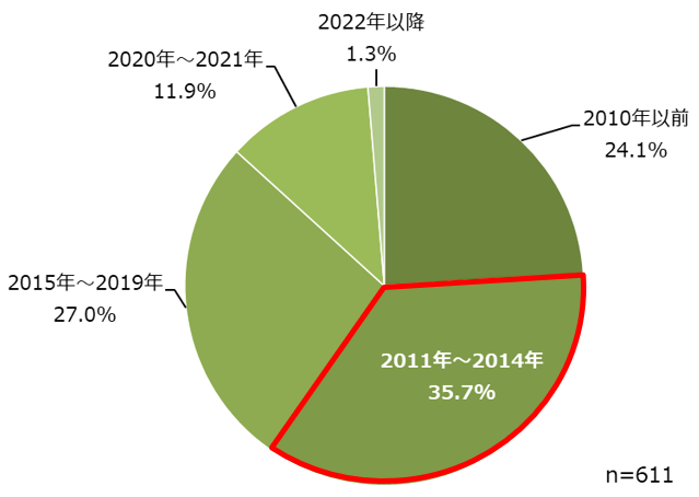 ・防災用品の備蓄時期で最も多いのは、東日本大震災後の2011年~2014年で35.7%