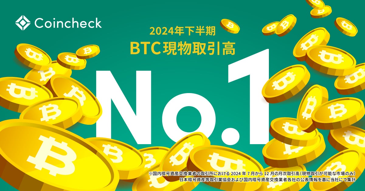 アプリダウンロード数6年連続「国内No.1(※1)」の暗号資産取引サービス「Coincheck」を運営するコインチェック株式会社(本社:東京都渋谷区、代表取締役:蓮尾 聡、以下、当社)は、暗号資産取引サービス「Coincheck」の取引所(以下、Coincheck取引所)における2024年7月から2024年12月のビットコイン現物取引高が「国内No.1(※2)」を獲得したことをお知らせいたします。
