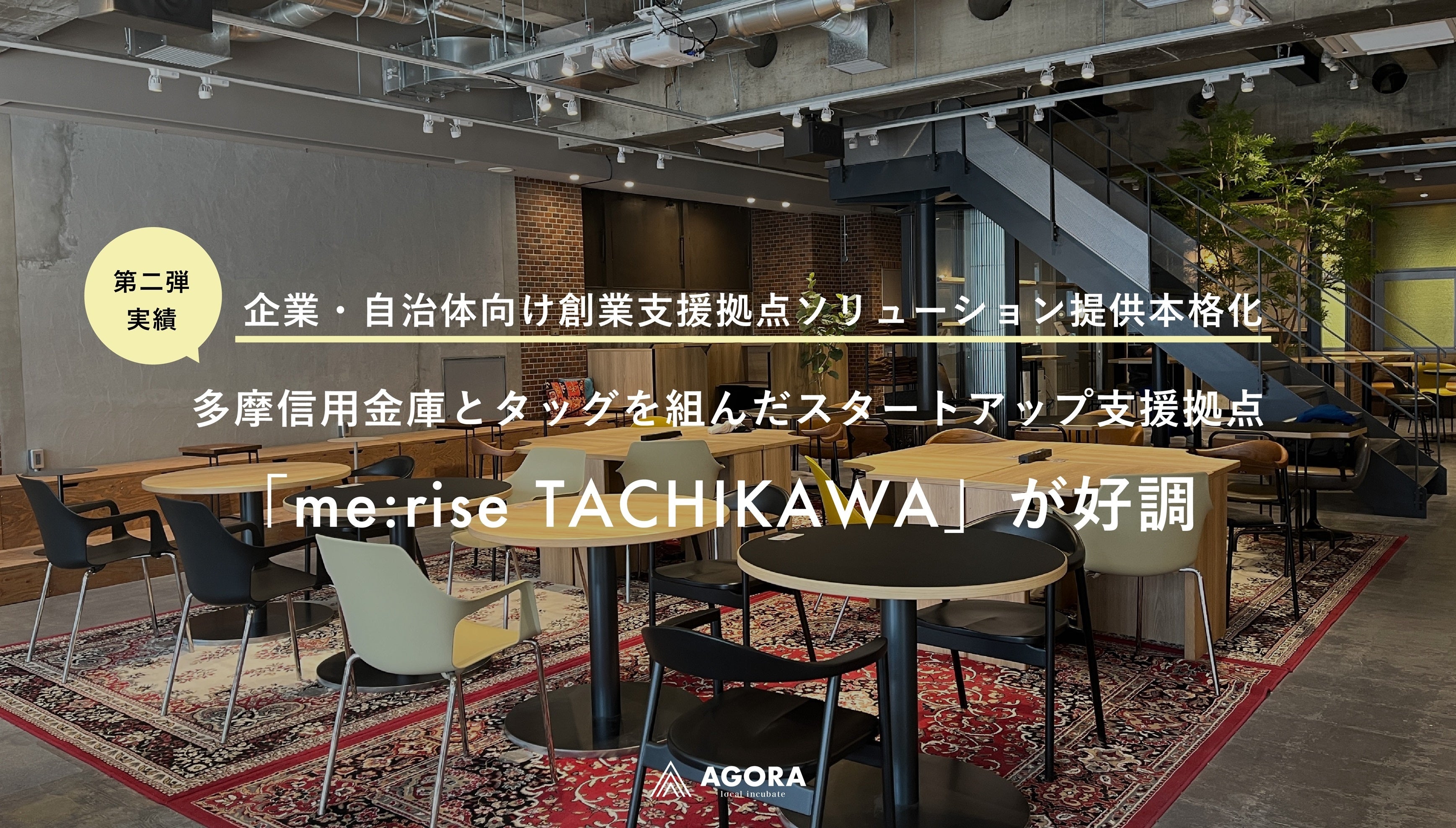 多摩信用金庫とAGORAによる創業支援拠点の利用が好調、1年半で100倍成長「me:rise立川」が利用者月間約1,600名・延べ20,000名