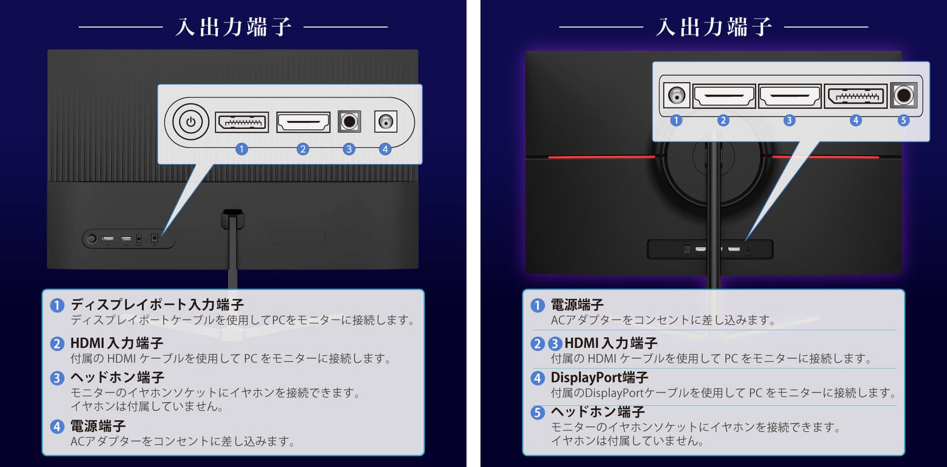 端子の数や種類は機種によって違いがございます。詳細は下記画像をご確認ください。