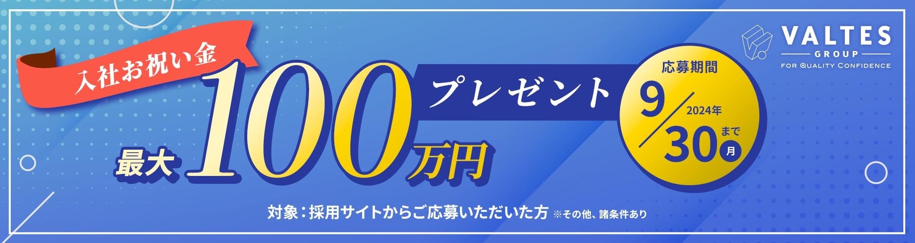 バルテスグループ、入社お祝い金として最大100万円を贈呈する採用キャンペーンを開始