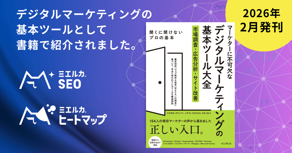 SEO・GEO(AI検索/LLMO)ツール「ミエルカSEO」、ヒートマップツール「ミエルカヒートマップ」、インプレス社発行の『マーケターに不可欠なデジタルマーケティングの基本ツール大全』に掲載