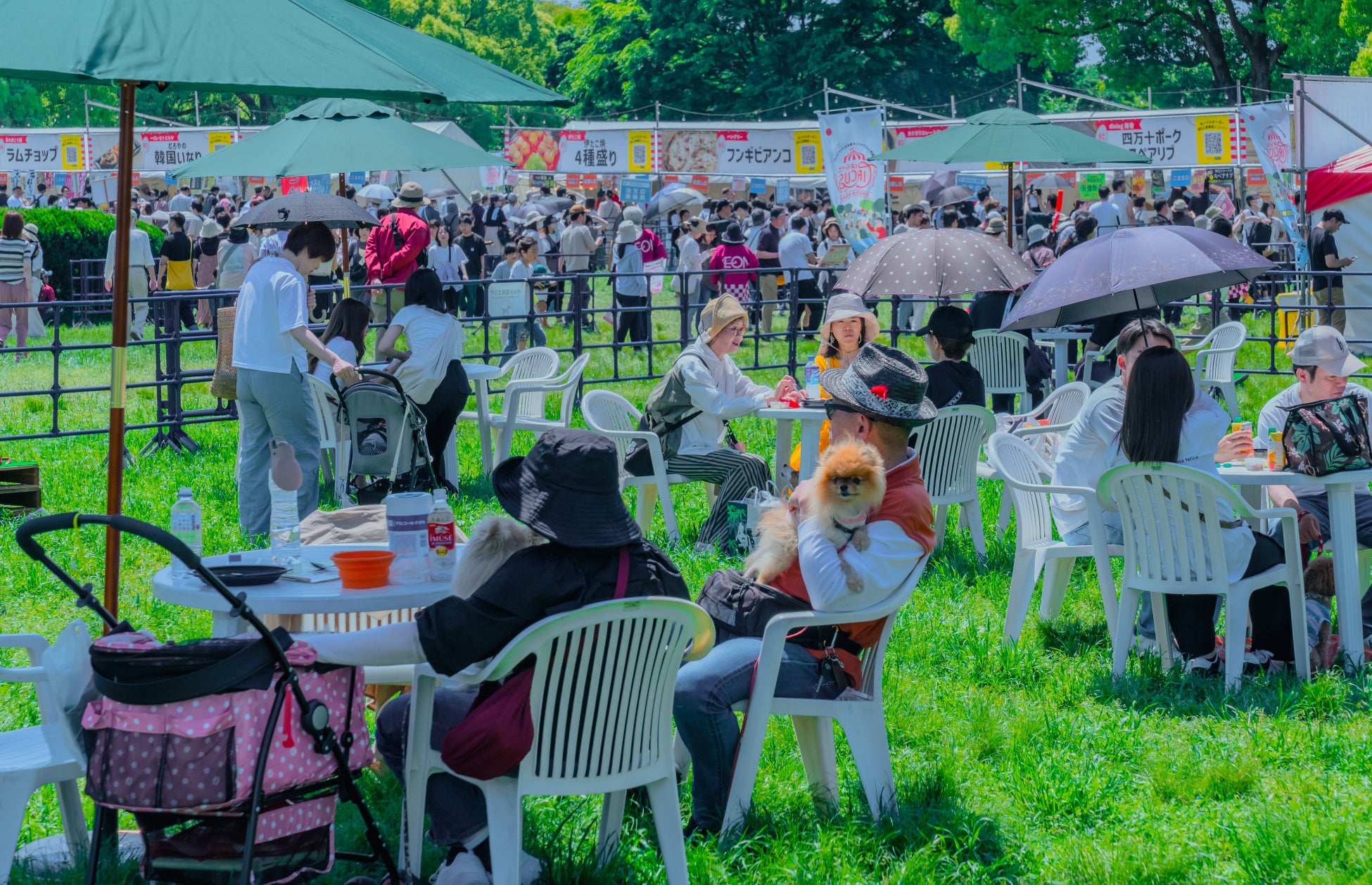 そして、多くの方にご来場いただくはらぺこサーカスでは、イートスペースをたっぷり設けています。さらに、毎年大好評の「ペットエリア」を今年も設置。お散歩がてらペットとご来場されても安心してお楽しみいただけます。芝生の公園では、お天気のいい日にはレジャーシートでの飲食もオススメです!