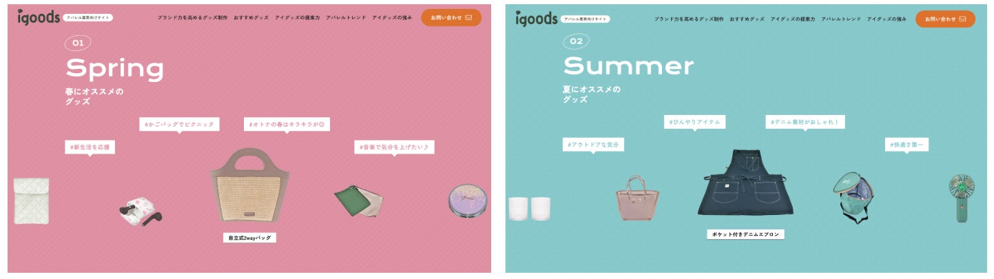 オリジナルグッズを企画制作するアイグッズ株式会社(本社:東京都渋谷区)は、2025年3月、アパレル業界向けのオリジナルグッズ・OEM制作のアイディアページを公開しました。豊富なグッズアイディアや業界トレンド情報などを掲載しており、アパレルブランド販促担当者様へグッズ制作のヒントを提供します。