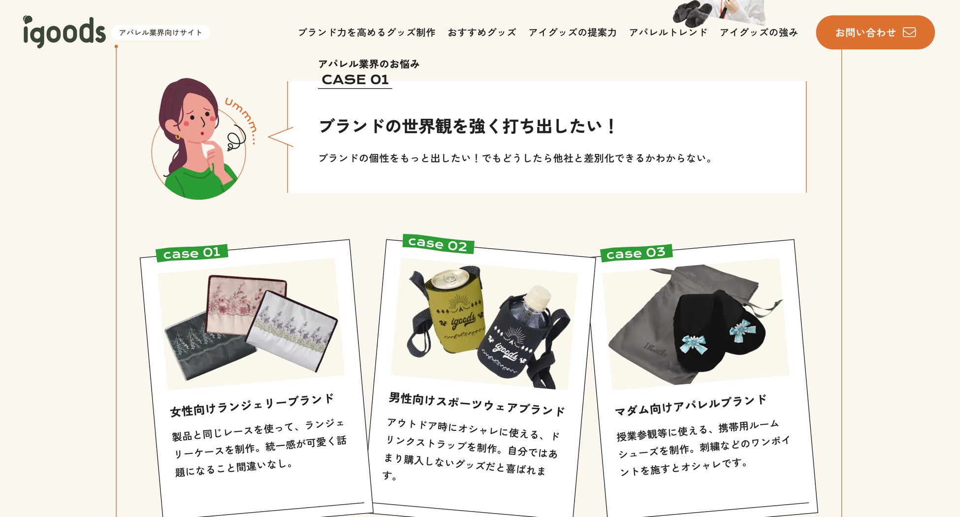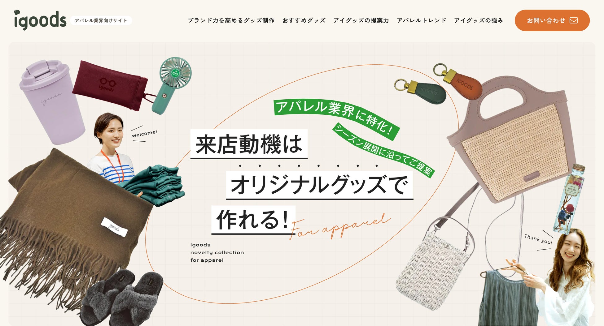 アパレル業界向けオリジナルグッズ・OEM制作アイディアページ:https://www.i-goods.co.jp/apparel/
