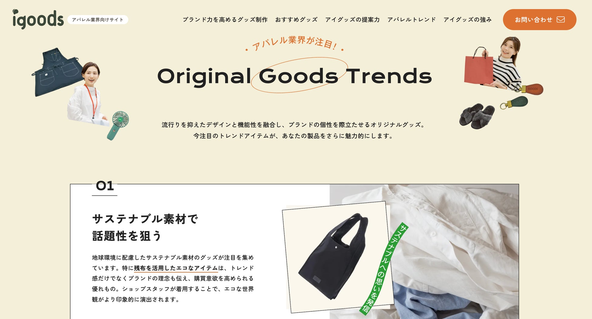 ◼︎【ものづくりのトレンド情報を網羅】アパレルブランド向けオリジナルグッズページ
