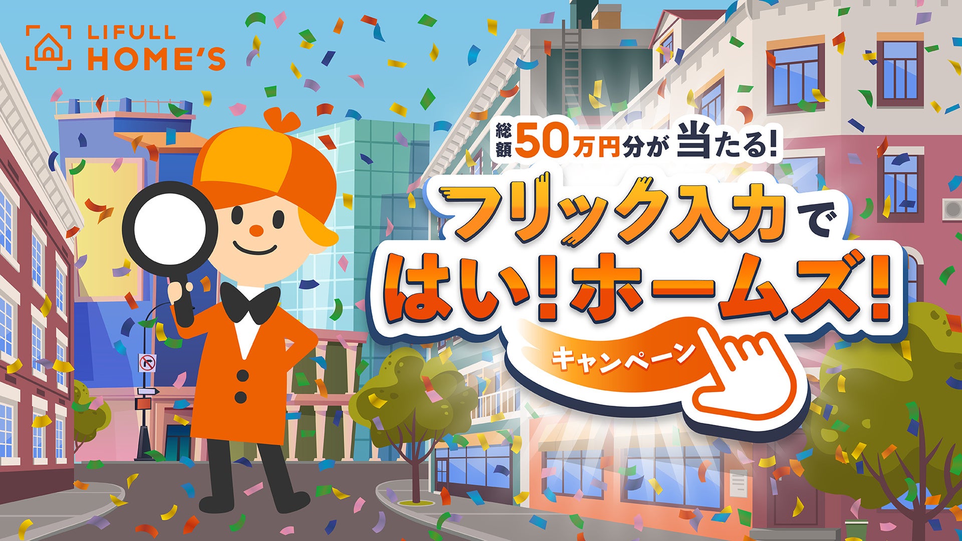 事業を通じて社会課題を解決する、株式会社LIFULL(ライフル)(本社:東京都千代田区、代表取締役社長:井上高志、東証プライム:2120)が運営する、日本最大級の不動産・住宅情報サービス「LIFULL HOME'S」は、「ホームズ」とひたすらフリック入力(※1)してスコアを競うスマホブラウザゲームを開発。条件を達成した人の中から抽選で203名様に総額50万円分のデジタルギフトをプレゼントする『フリック入力で「はい!ホームズ」キャンペーン』を、2023年3月19日(日)まで開催します。