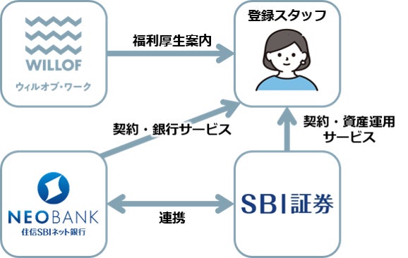 SBI証券・住信SBIネット銀行とウィルオブ・ワークが連携 当社登録スタッフ向け資産形成サービスを福利厚生として導入