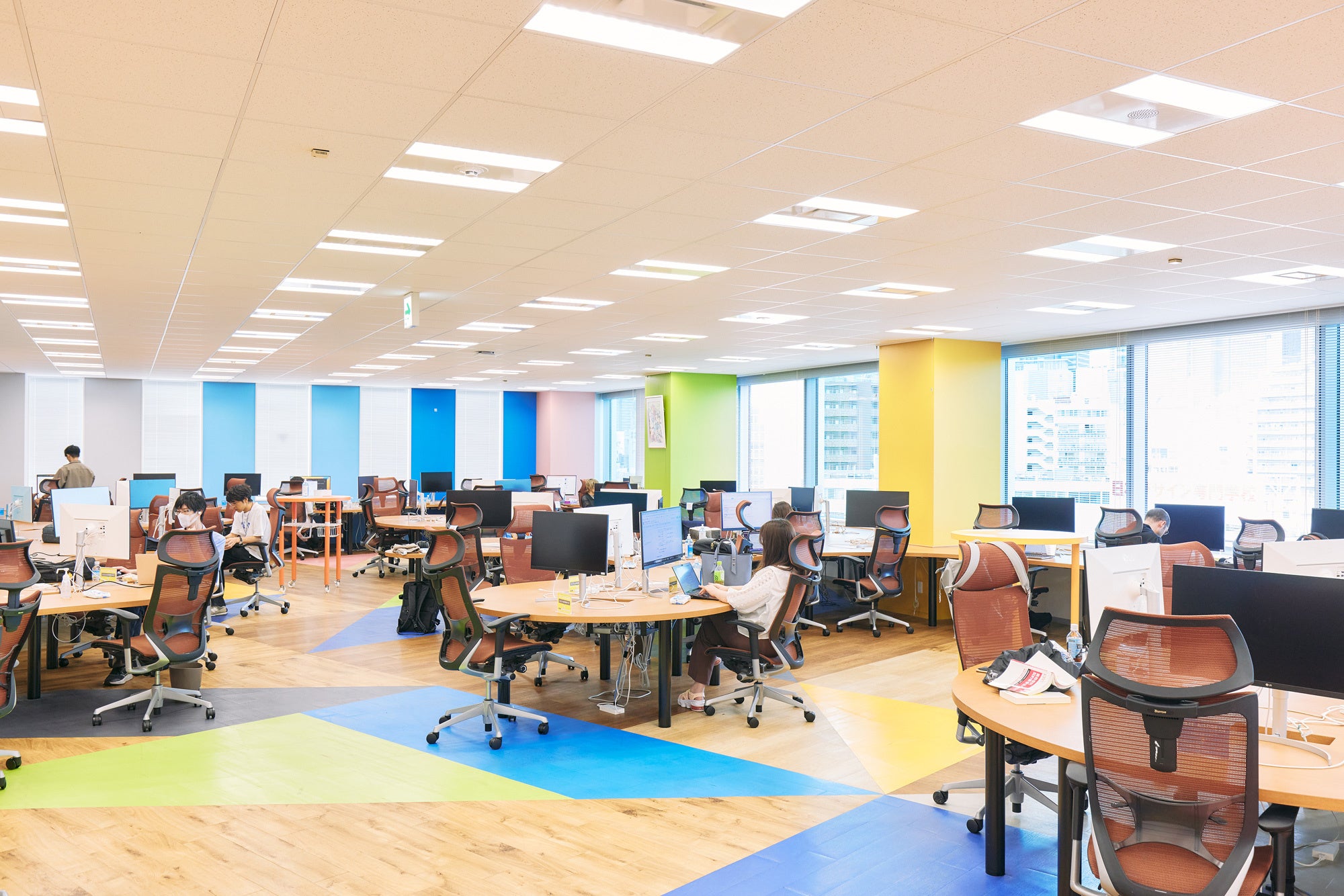 オフィスワークを希望する社員に向けて、全席4Kモニターを設置したフリーアドレスや、17種類のドリンクが常時無料で利用できるフリードリンク制度、12個の個室会議ブースを備えるなど、快適なオフィス環境を用意しています。