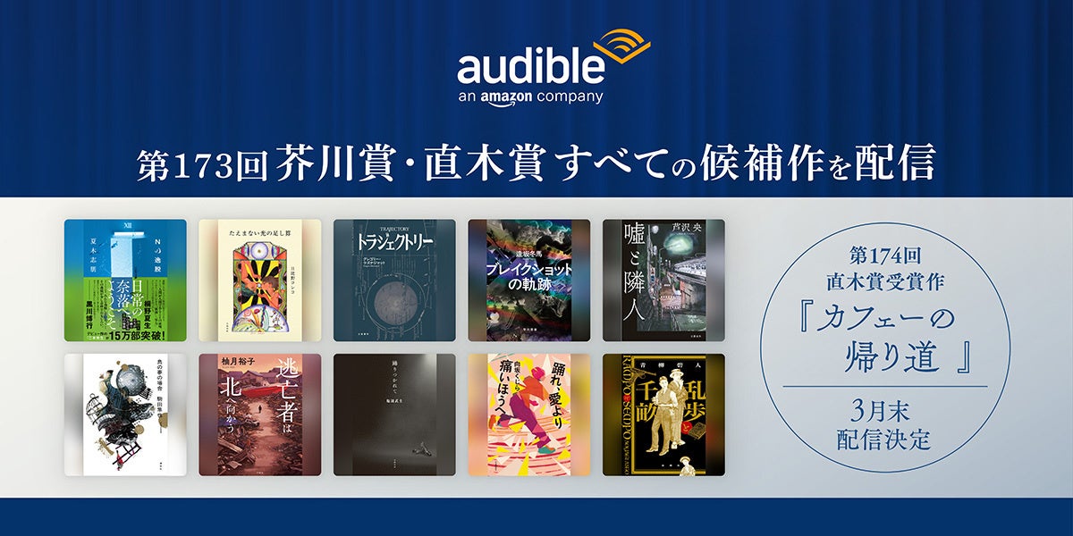 Audible、第173回芥川賞・直木賞すべての候補作を本日配信ラインアップ完了! 第174回直木賞受賞作『カフェーの帰り道』も3月末配信決定