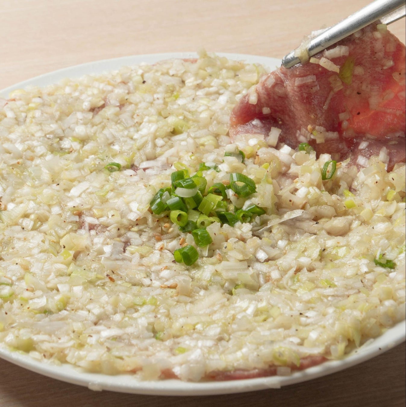 薄切り牛たんに大人気旨塩にんにくタレをたっぷり擦り込み、寿司下駄にドーーンと盛り付けた、ときわ亭の新名物です。