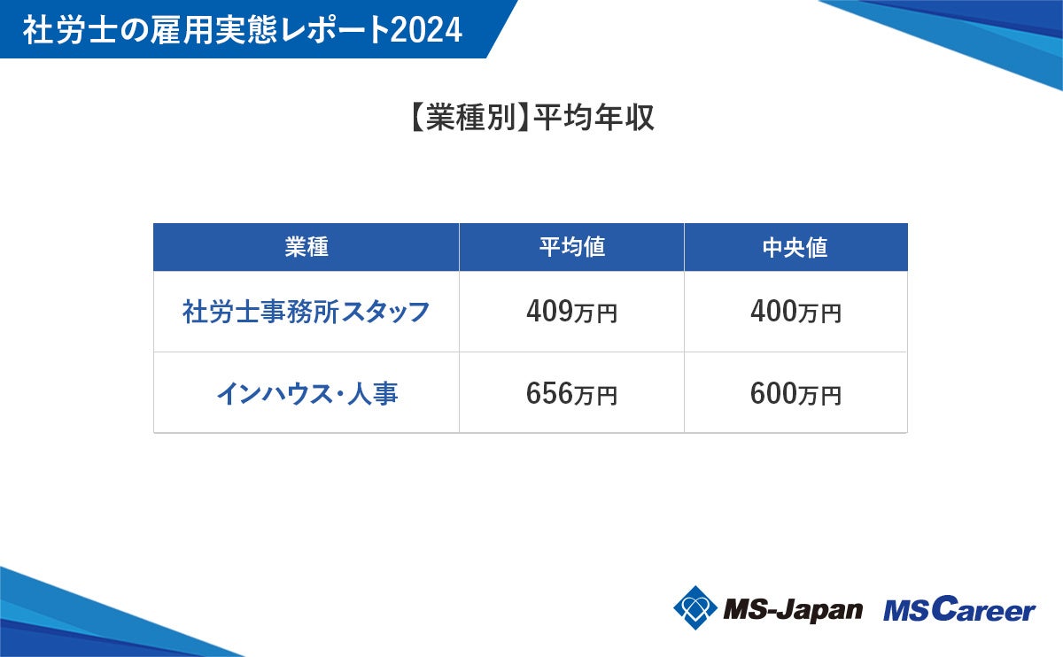 MS-Japanが『社労士の雇用実態2024』を公開。平均年収は489万円で、所属業種で年収「247万円」の差!