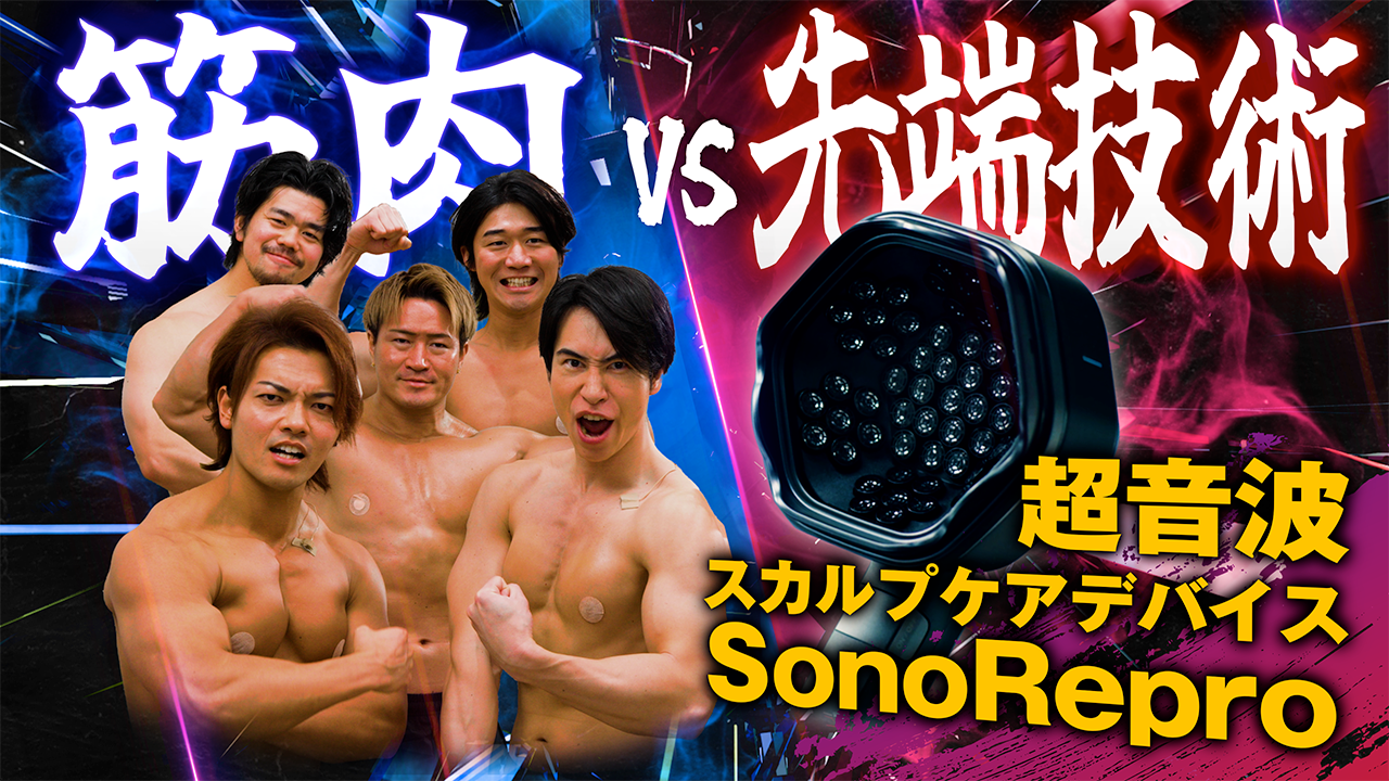 今回の「振動王グランプリ」では、PxDTの非接触振動圧刺激技術を搭載したスカルプケアデバイス「SonoRepro」と、厳選された5人のマッチョたちが振動の力を競い合いました。