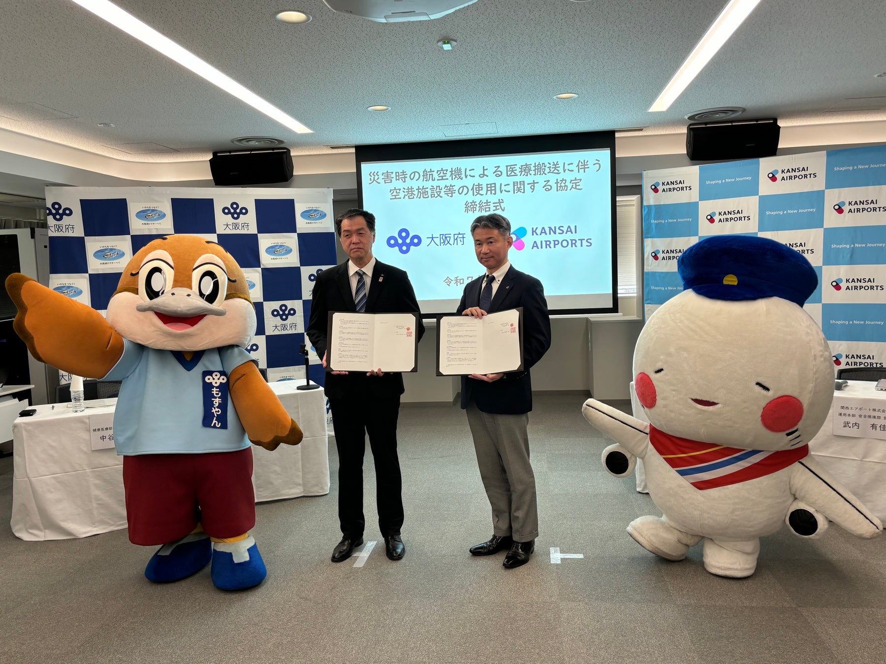 大阪府・関西エアポート株式会社災害時の航空機による医療搬送に伴う空港施設等の使用に関する協定書を締結
