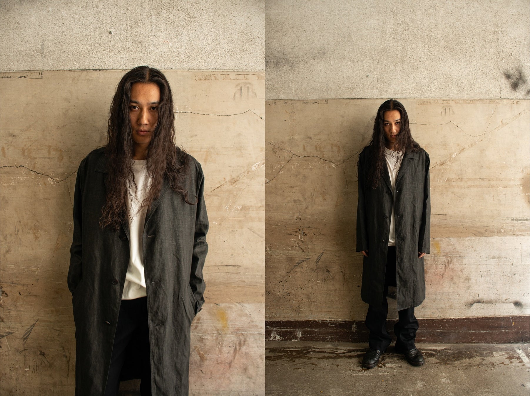 <フラクション>のブランド名は「わずかな」や「一部」を意味しており、「取るに足らない社会の一部である自分たちの反映」をテーマとしています。衣服を構造として捉え、カッティングやバランスの再設計によって新たなフォルムを生み出す日本発のブランドです。オリジナルで制作した毛芯を用いたテーラードジャケットや美しいパターンのシャツやパンツをはじめ、既存のアイテムをベースにしながらも、細部にまでこだわり計算された設計により、ミニマルでありながら強い存在感を放つ一着へと昇華しています。実際に袖を通すことで、その立体感と心地よい緊張感を感じていただけるブランドです。