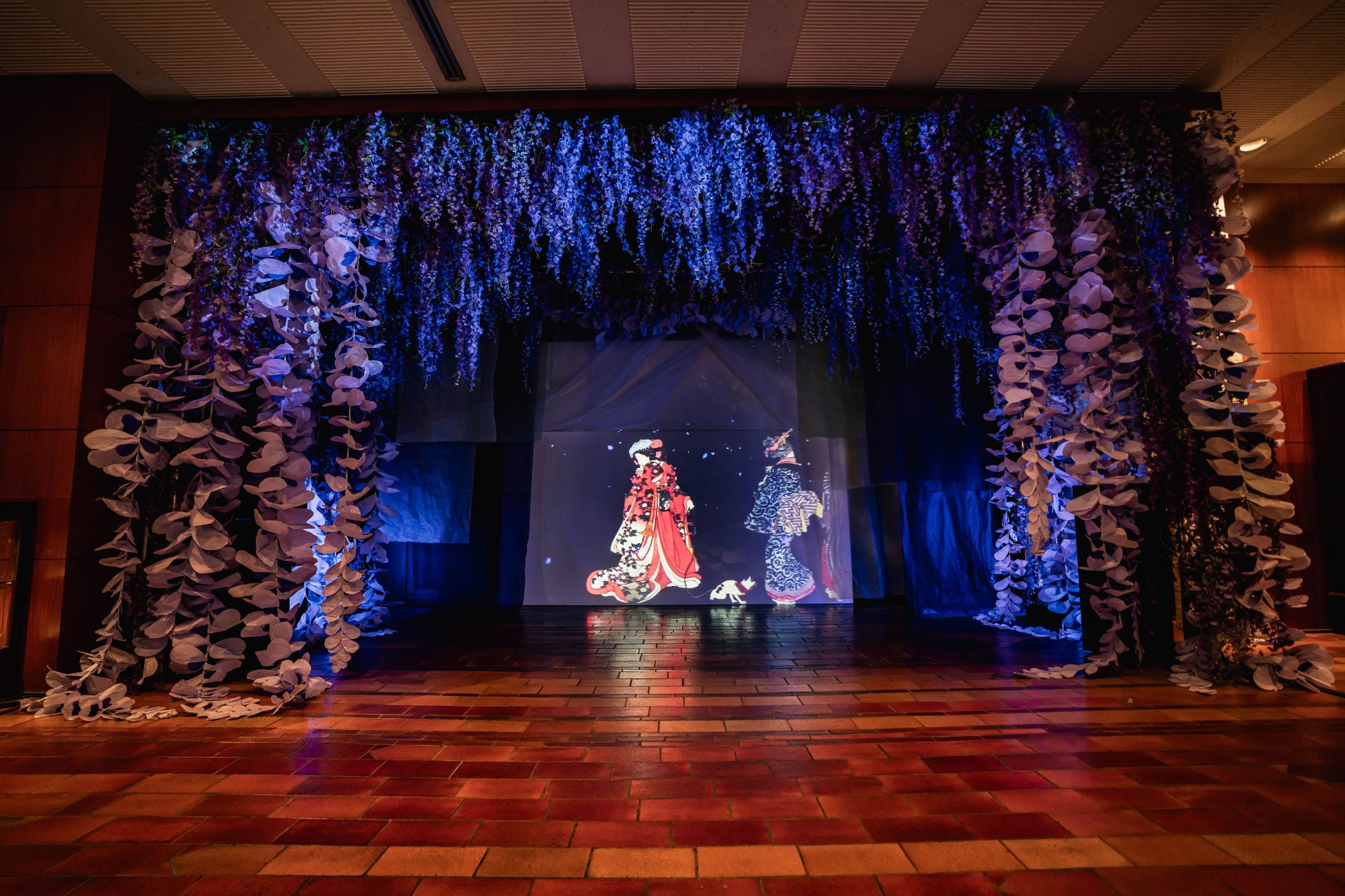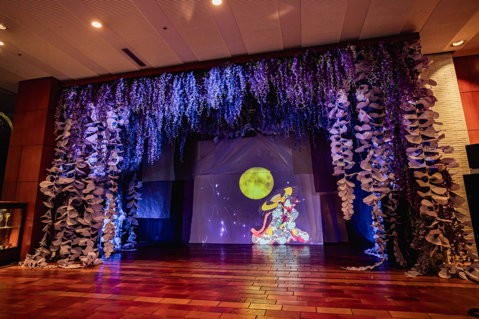 名古屋観光ホテルのメインロビーに、藤のオブジェクトアーチの中に浮世絵に描かれた美人画が動き出すプロジェクションマッピング映像を組み合わせたデジタルアートインスタレーション作品を展示。