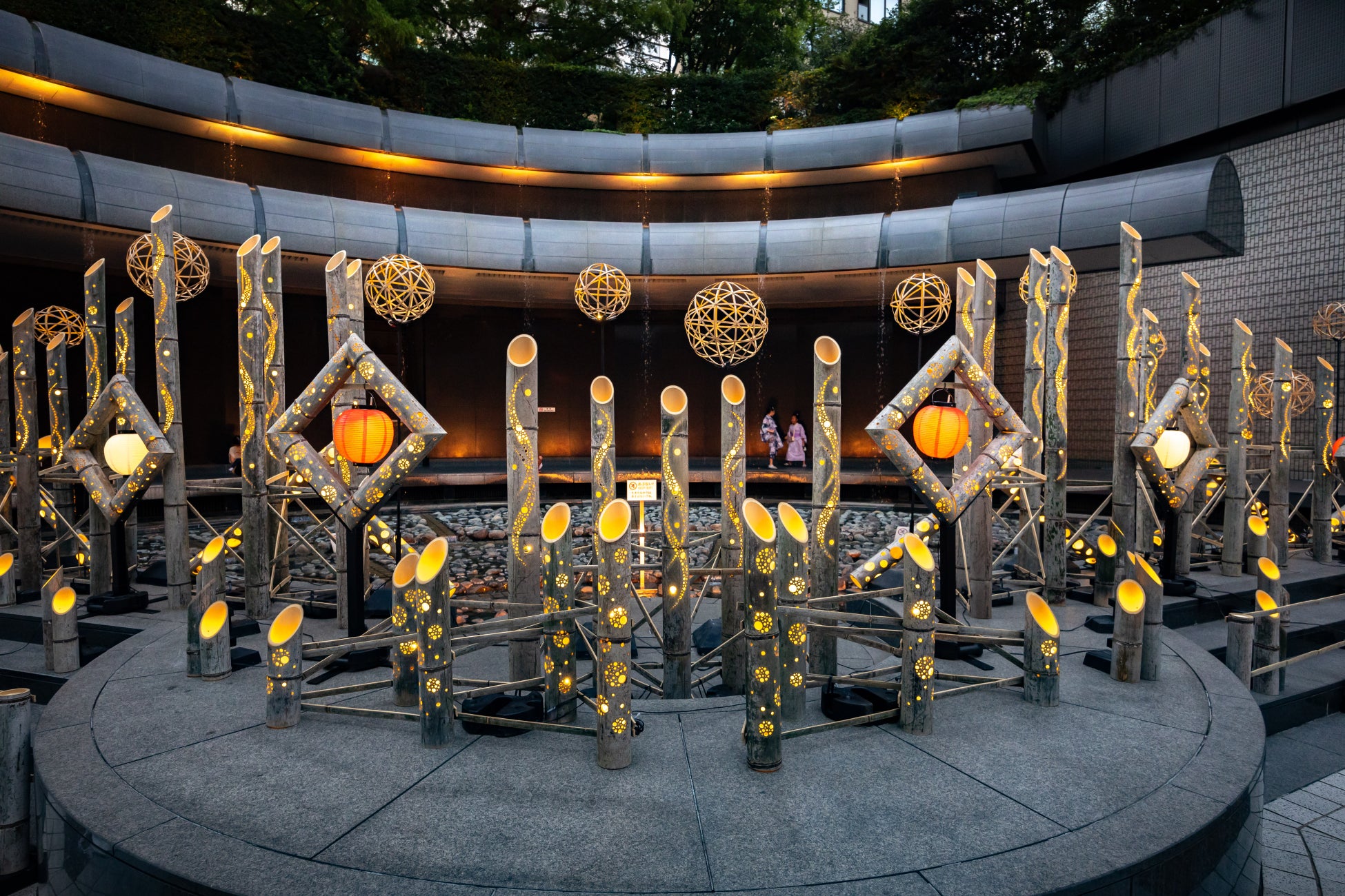 昨年に引き続き、竹あかり演出家・池田親生、三城賢士によるユニット「CHIKAKEN」による、中秋の名月をテーマにした竹の装飾が、お祭りムードを盛り上げます。