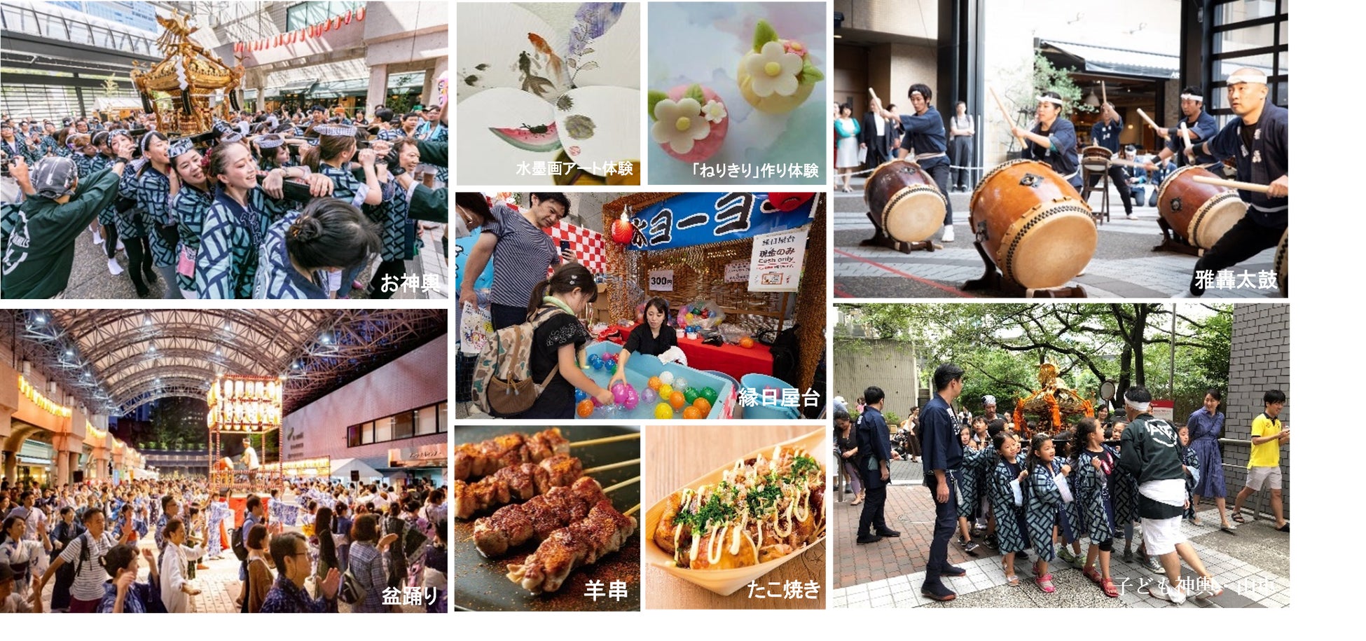 サントリーホールを擁する音楽の街・アークヒルズならではの音楽やパフォーマンスプログラムも展開。三味線ユニット、三味道による津軽三味線の演奏や葛飾区を拠点とする和太鼓集団・雅轟太鼓が披露する圧巻の和太鼓パフォーマンスなど、街中にお祭りの雰囲気を盛り上げる音色や歓声が響き渡ります。
