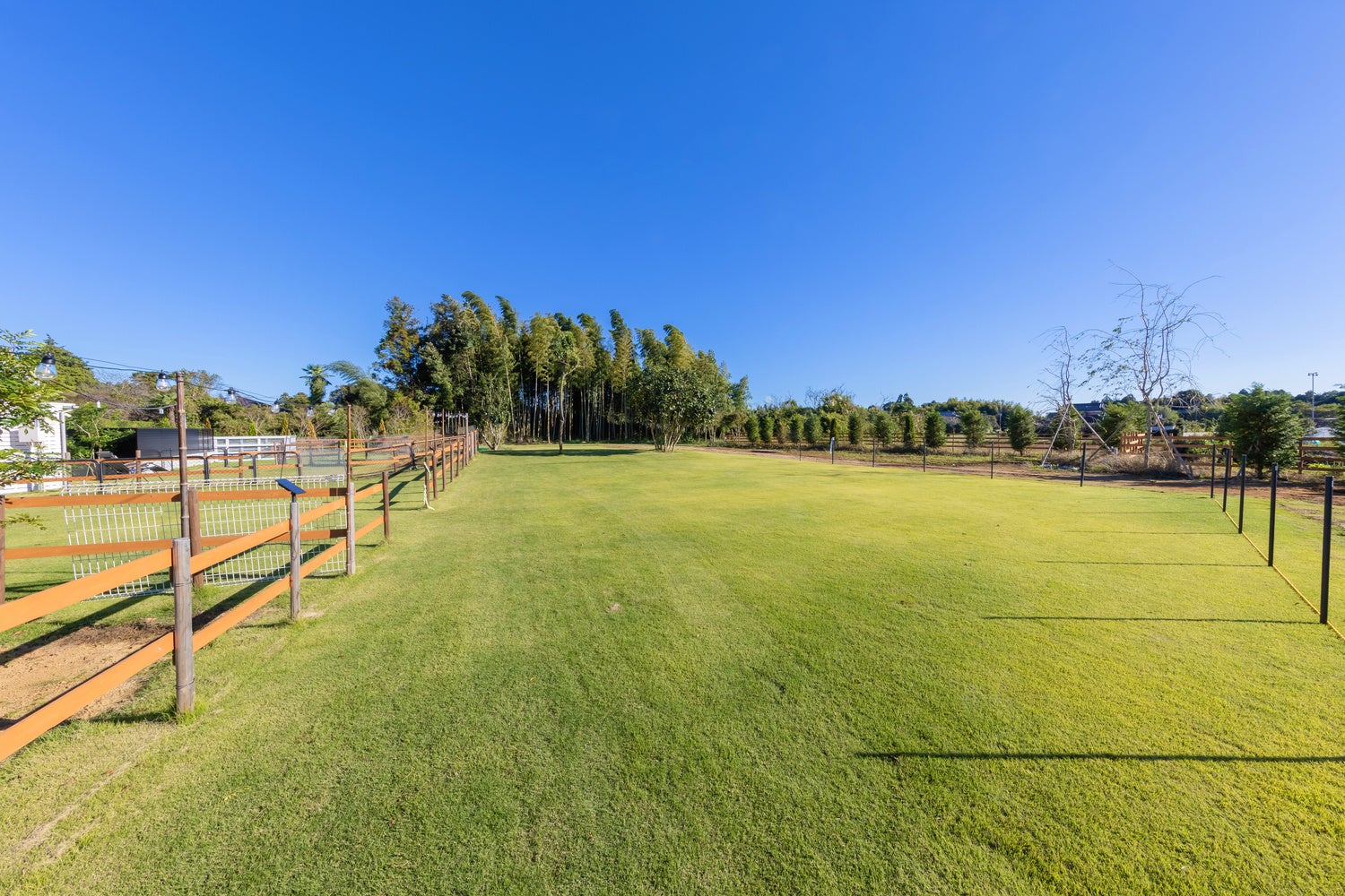天然芝のプライベートドッグランでワンちゃんも安心して遊び放題。