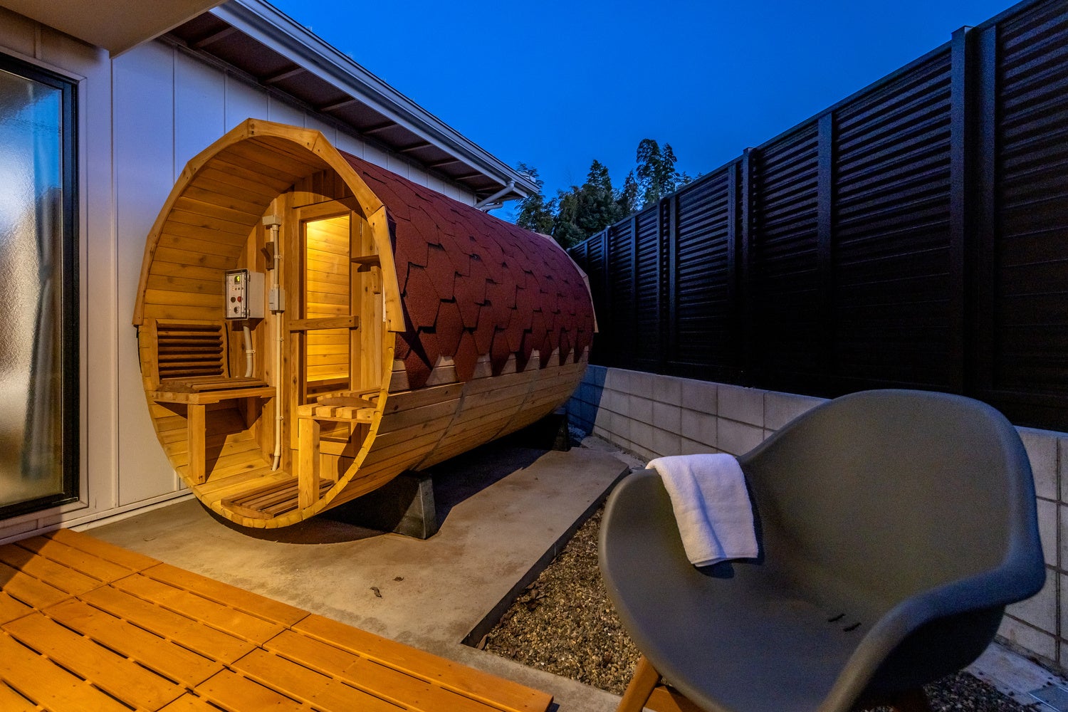 すべてのお部屋にバレルサウナも完備しており、快適なご滞在をお届けいたします。