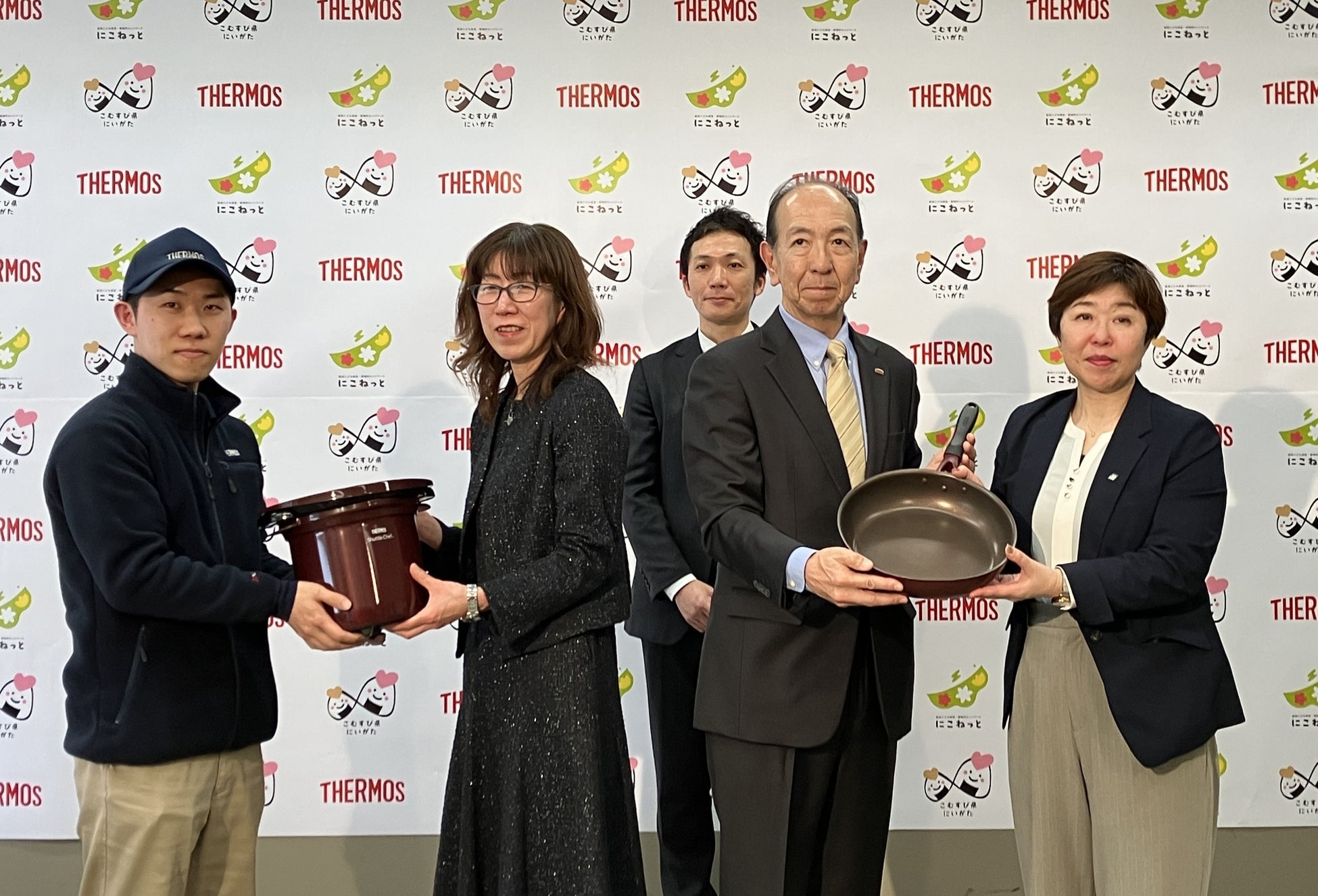 魔法びんのグローバル企業として、人と社会に快適で環境にもやさしいライフスタイルを提案するサーモス株式会社(本社:東京都港区 社長:片岡 有二)は、地域の子どもたちの健康や成長を願い新潟県こどもの居場所支援コーディネーター設置事業受託先である「新潟こども食堂・居場所ネットワークにこねっと」様のご協力のもと、サーモスのフライパンと真空保温調理器シャトルシェフを新潟県内のこども食堂(以下、こども食堂)70か所に寄贈しました。2026年3月19日(木)には、フライパンおよび真空保温調理器シャトルシェフの贈呈式を、新潟県庁 記者発表室にて実施しました。