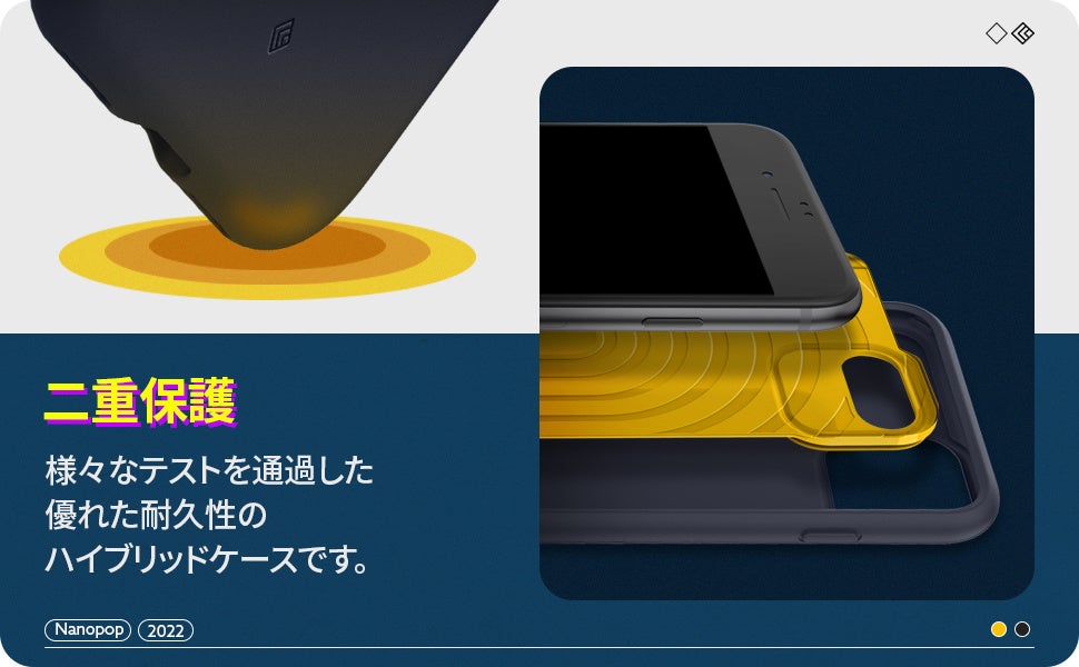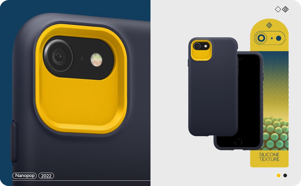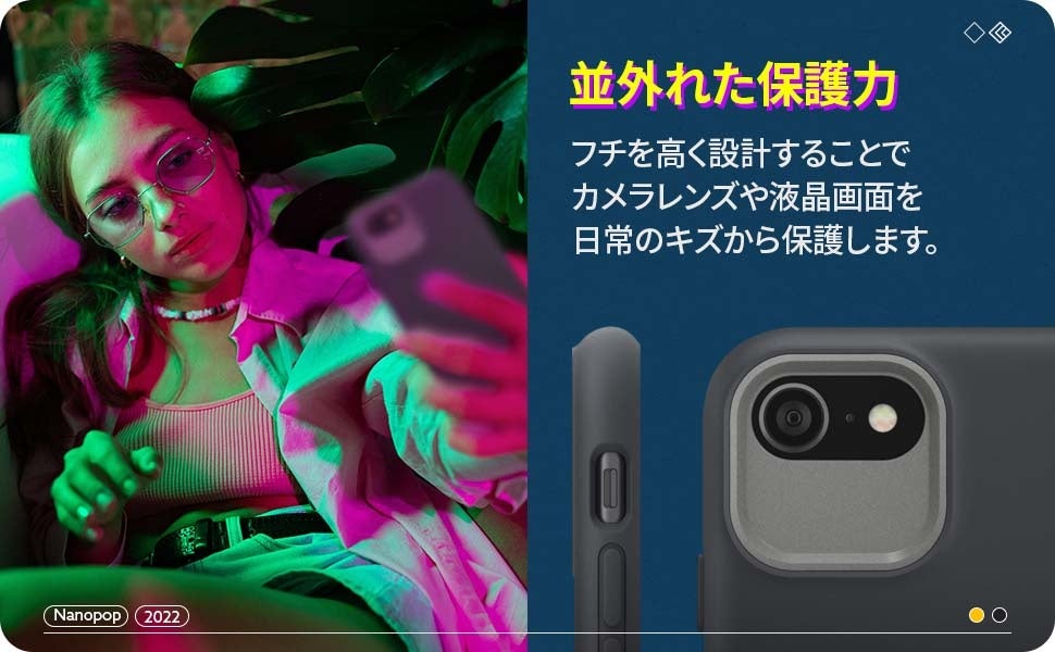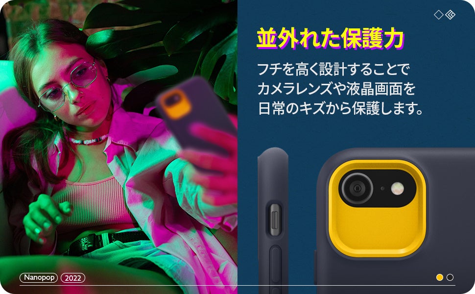 モバイルアクセサリーブランド「Caseology」では、iPhone SE 第3世代 / SE 第2世代 / 8 / 7 に対応する「ナノポップ」を発売しました。ナノポップは、果物・野菜のような色の組み合わせが特徴のCaseology人気シグネチャーモデルです。厳選されたTPU本体の内側に、カメラ部分まで繋がったPCシートを組み合わせることでツートンカラーを実現、見栄えにこだわりました。カメラリングは正方形に仕上げ、プチiPhone12、iPhone13のような演出が可能です。