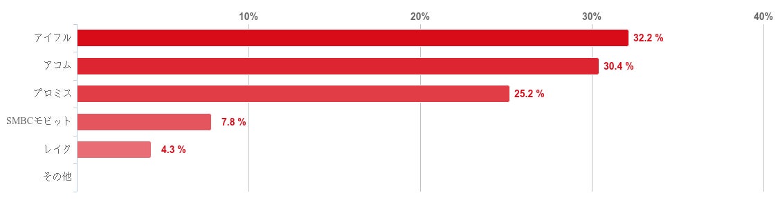 アイフルが32.2%で最も多く、アコムが30.4%、プロミスが25.2%でこれに続いた。