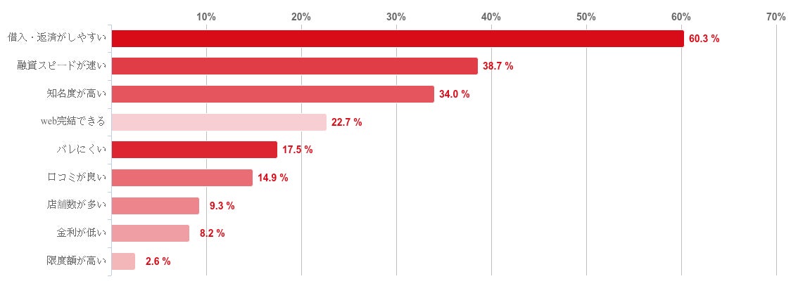 そのほかには、「融資スピードが速い」が38.7%、「知名度が高い」が34.0%となった。