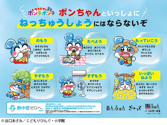 今回、幼稚園・保育園・こども園の先生のための情報誌「園ふぁん with 新 幼児と保育」7月号(6月7日発行)の付録として、「ポンちゃん熱中症対策ポスター」を制作し、全国9000園に配布します。