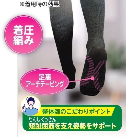 足裏の筋肉「短趾屈筋(たんしくっきん)」を支え、足裏から姿勢をサポートします。