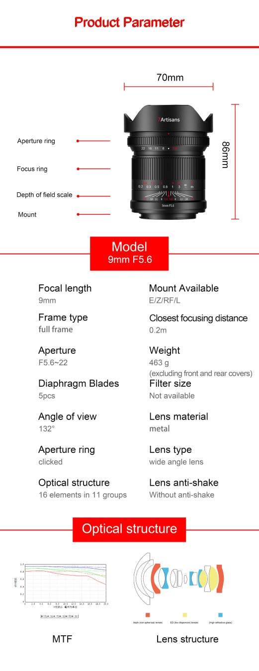 2016年に深センに設立された七工匠(7Artisans)は、光学設計エリートと結びついて「7Artisans」レンズブランドを立ち上げ、レンズ設計、研究開発、生産、製造に取り組む企業です。今回は、スナップや建築の撮影に最適な焦点距離 9mmの超広角レンズを発表しました。