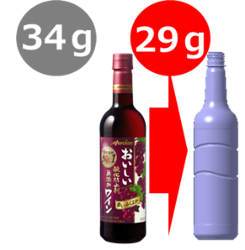 ・従来から5g軽量化した、メルシャン史上最軽量となるワイン用の720mlペットボトルを新たに採用しました。