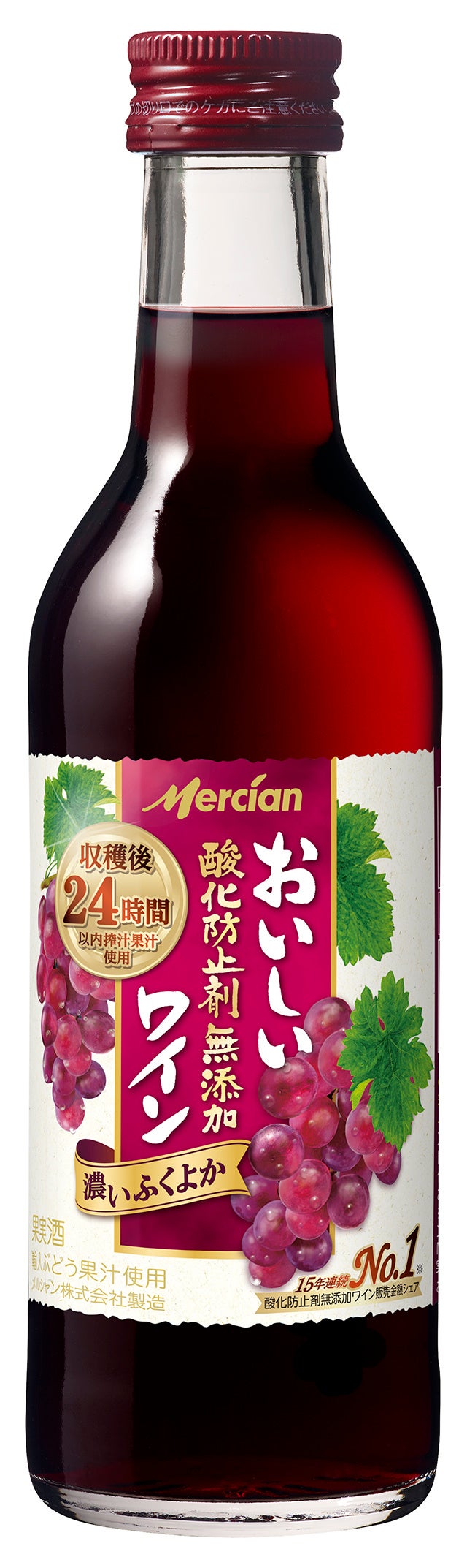 ※1 「メルシャンおいしい酸化防止剤無添加ワイン」は、無添加カテゴリー国内ワイン売上シェアNo.1ブランド。2006年4月~2021年3月実績。流通専門誌「ダイヤモンド・チェーンストア」調べ。出典:KSP-POS