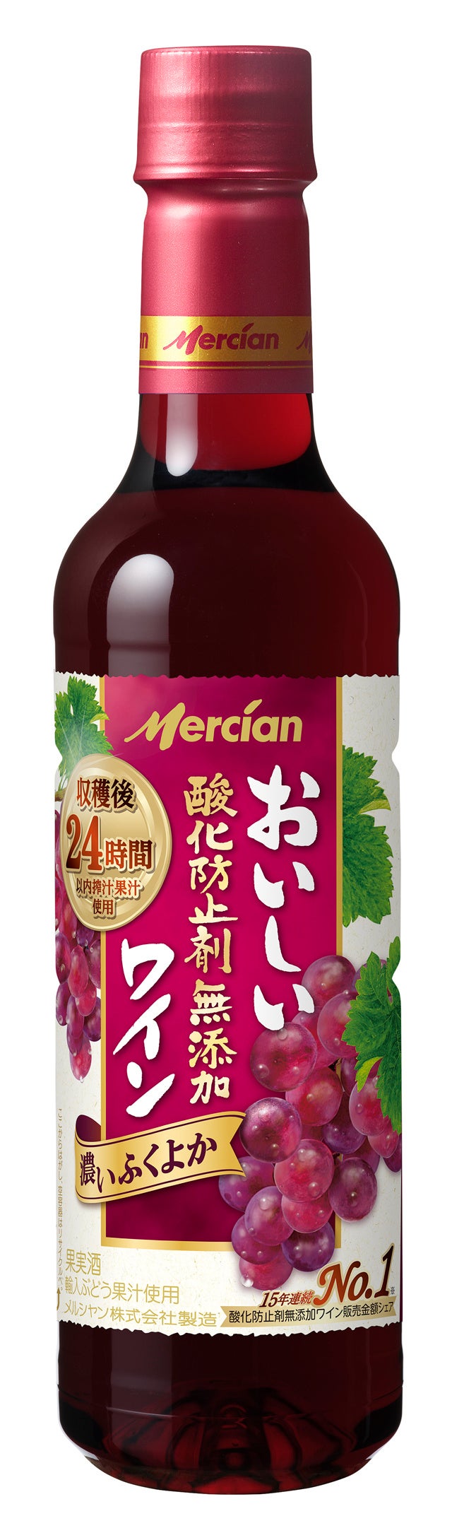 「おいしい酸化防止剤無添加ワイン」スタンダードシリーズは、“ぶどう本来のおいしさ”やワイン専門会社であるメルシャンが作る安心感などから、2003年の発売以来累計1.9億本※3を販売する、15年連続「酸化防止剤無添加」カテゴリーNo.1ブランドとして、お客様から愛され続けています。今回のリニューアルでは、収穫後24時間以内搾汁果汁のみを使い、お客様に長年好評をいただいている“ぶどう本来のおいしさ”を進化させました。
