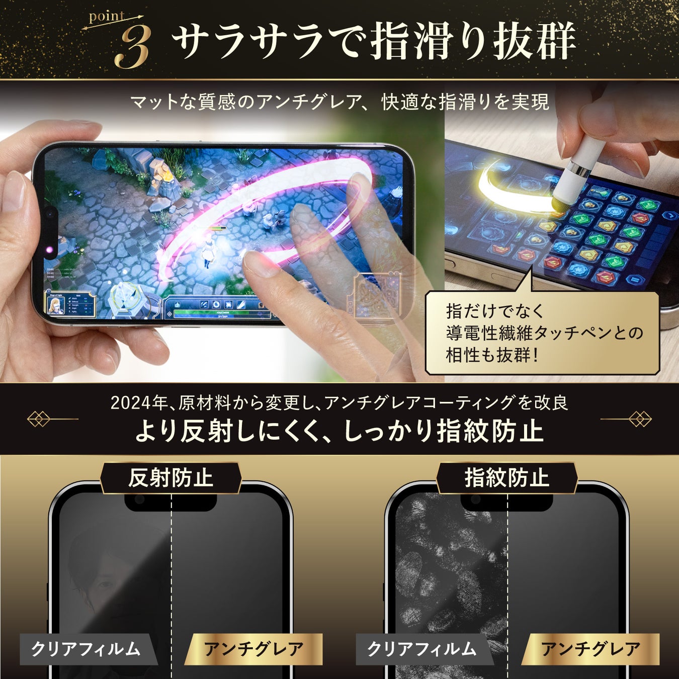 さらさらタッチ!【 iPhone16シリーズ用 アンチグレアフィルム】指滑り抜群で快適操作!簡単に貼り付けられるガイド枠。iPhoneの保護フィルムならベルモンドのモンスターフィルム
